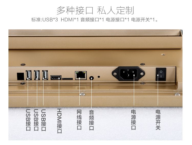 全新香檳金17寸電容屏觸摸一體機(jī),無論你怎么擺放,都能彰顯檔次。
